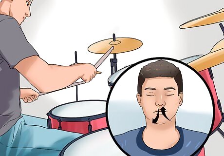 Stay relaxed and loose, even during intense solos. One of the keys to smooth, fluid solos is remembering to remain relaxed. Even as you're flying around the kit, remember to keep breathing. It sounds like a silly thing to remember, but many young drummers instinctively hold their breath when things get difficult, which freezes them up and slows down their muscles. Don't tense up your muscles to force yourself to move faster. Keep your joints loose and relaxed.