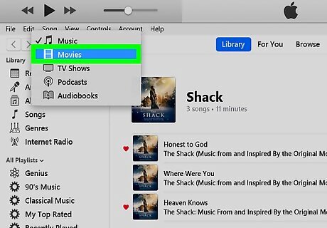 Select Movies from the drop-down menu. It’s near the top-left corner of iTunes.