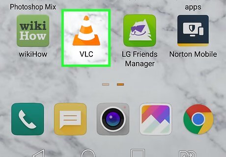 Open VLC. The app icon looks like an orange and white safety cone. If you've already installed it, you'll find it on the home screen, in the app drawer, or by searching. VLC handles the playback of most video formats, including MP4. If you don't have VLC, you can download it for free from the Play Store or App Store offered by the developer "Videolabs" or "VideoLAN." The app is called "VLC for Android" in the Google Play Store and "VLC for Mobile" in the App Store. If this is your first time using VLC, you'll go through a tutorial before you can begin.