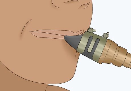 Form your embouchure. Curl your lower lip over your bottom teeth slightly, and rest your top teeth on the top of the mouthpiece. You'll discover when you start playing that you may need to adjust this slightly.