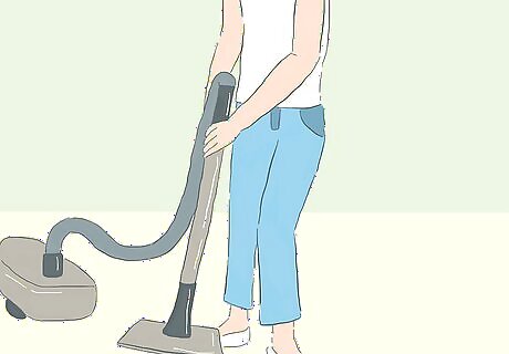 Vacuum and launder any smaller throw rugs. Larger throw rugs will have to suffice with vacuuming, flipping them upside down, and vacuuming again.