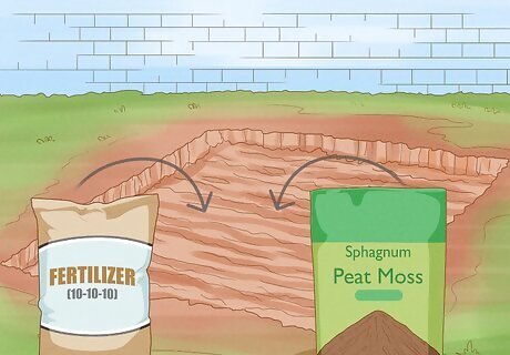 Add other soil amendments as necessary. When you check the soil composition and have it tested, you can find out if you need to add sand, clay, or other topsoil to make the soil the best possible mixture for your garden. This is something that a garden center can be exceptionally helpful for. Base any amendments on the results of your soil test. You don’t want to overdo it with adding sand or clay, so try to add a little at a time to even out the overall texture of the soil. You may want to add gypsum or perlite which help to aerate the soil if your test reveals low oxygen content. Sphagnum peat moss is a helpful amendment if you can tell the soil is pretty dry as it helps retain moisture and slowly release it into the soil. You may need to add some basic fertilizer which can help balance the nitrogen, phosphorus, calcium, magnesium, and potassium, which are all vital to healthy plant growth.