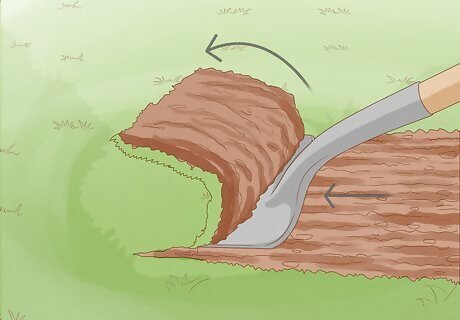 Create rows. Starting at the end of the area you've marked off for your garden, shovel the soil from your planned rows onto the planting bed. This will raise the beds a little, which helps with drainage and helps warm the soil. You can then line your pathways with newspaper or cardboard and top that with mulch.