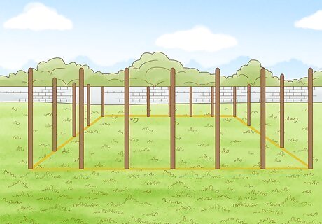 Stake off the perimeter of your garden. Before you start digging, make a decision about the size and shape you want the garden to be. If it will be three or more rows, make sure you account for extra space to walk between the rows. For only two rows, you can tend the garden from the outside of each row. Stick four stakes into the ground to form the rectangle of the garden plot.