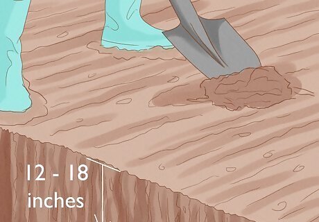 Turn over the soil using a shovel or motor driven rotary tiller. For new plots, you’ll want to turn the soil over about 12-18 inches deep. You may want to dig that deep into the soil with a shovel, and then go over the plot a second time with a tiller to break the soil up. As you dig through the soil, remove any large stones, along with any roots or debris (eg, bits of metal, plastic etc) you encounter. You may need to make more than one pass to break up very compacted soils. This may be the most time consuming part of the project, especially if you end up finding a lot of rocks or other debris. It’s good to have a garbage can nearby in which you can throw anything you find in the soil.