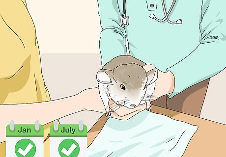 Take your chinchilla to the vet for regular teeth checkups. One way to prevent any overgrown teeth is to keep a close watch on them. The vet will check the length and overall condition of the teeth. You should take your chinchilla to the vet for a checkup one to two times each year.
