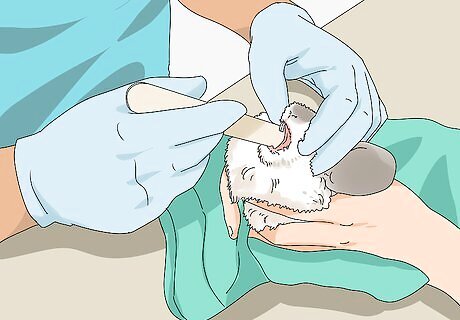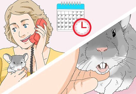 Make a veterinary appointment as soon as you notice a tooth problem. Overly long teeth or tooth spurs can cause many problems for your chinchilla. If you notice any problems, take your chinchilla to the vet immediately. The vet needs to take care of the problem as soon as possible. Overgrown teeth and tooth spurs can cut your chinchilla’s mouth, causing bleeding and sores. Cuts in the mouth can also get infected. You may also notice other symptoms, such as problems or a decrease in eating, weight loss, problems with the eyes, slobbering, and paying close attention to or pawing at their face.