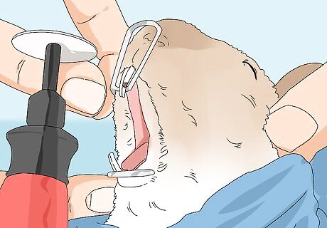 Have a surgeon file the tooth. Chinchillas can have teeth that get overly long if the matching tooth is missing. This causes the remaining tooth to grow long since it won’t wear down. They may also develop tooth spurs, which are pieces of tooth that have grown in differently than the normal tooth. The only way to treat these tooth conditions is to have a vet or veterinary surgeon clip or file the tooth down. Your chinchilla will have to be put under anesthesia for this procedure.