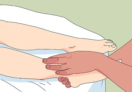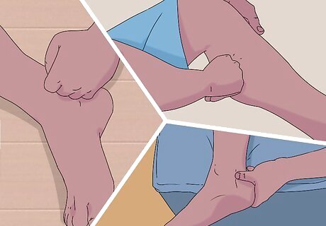 Massage your calves, Achilles, and ankles with your knuckles. Use your knuckles to apply light to moderate pressure to your ankles and the areas surrounding them. Massage in small circles over these areas for around 5 minutes before engaging in physical activity, or whenever your ankle joints feel tight. For the best results, have a physical therapist or athletic trainer do the massage and show you the proper technique. Then you can do it yourself whenever necessary.