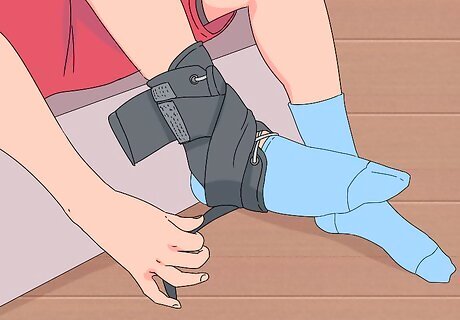 Wear professionally-fitted ankle braces when doing athletic activities. Whether you’ve experienced ankle sprains before or not, research indicates that bracing your ankles will reduce your chances of spraining them during athletic activities. There are a variety of lace-up, hook-and-loop closure, soft, and semi-rigid braces to choose from, and your best option is to work with your doctor, physical therapist, and/or athletic trainer to find the best option for you. A professionally-fitted brace is more likely to provide the support and protection you need, while not overly restricting your range of motion.