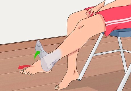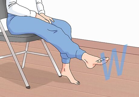 Trace the letters of the alphabet using your foot. With your leg straight up in the air, act like you're writing the letters of the alphabet with your toe. Try to make the letters as big as possible so that you have to really move your ankle. Keep your leg straight the entire time, being careful that you don't bend your knee. Do the exercise twice, and try to make your letters bigger the second time. Don't do anything that feels uncomfortable. If you need to, modify the exercise to fit your needs by going slow or making smaller movements.