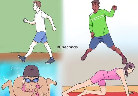 Do 30 minutes of low impact cardio exercise daily. Exercising daily will help protect your bone and joint health and will help your heart stay healthy. Low impact exercises are easier on your joints, so they're a great option if you're worried about ankle injuries. Choose an exercise that gets your blood pumping but doesn't involve a lot of running or jumping. For instance, you might try: Brisk walking Swimming Aerobics Dancing Fast yoga