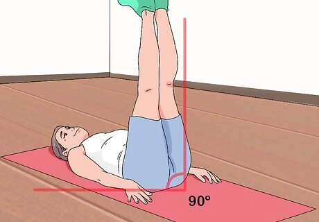 Lie down on your back and raise your legs in the air. Get comfortable on an exercise mat, rug, or mattress. Then, bend at your hips so that your legs are at a 90 degree angle to the rest of your body. If necessary, place pillows under your body to help get yourself comfortable. You shouldn't feel any pain during the exercises.