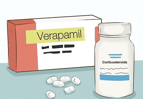 Discuss medications that may help to prevent cluster headaches. There are a few different medications that may help to prevent cluster headaches. Talk with your doctor to find out if any of the available options might be right for you. Some medications that are commonly used to prevent cluster headaches include: Verapamil, which is the most common but you will need to titrate up to stronger doses Corticosteroids, which can help as adjunctive therapy early on Lithium Gabapentin Local anesthetic injections