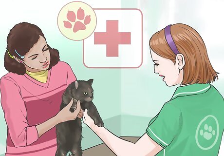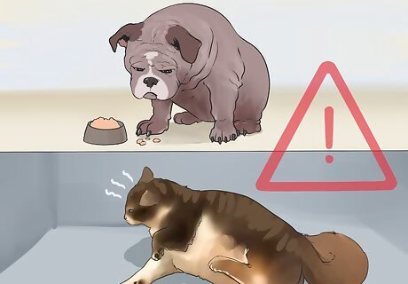Take your pet to a veterinarian or call poison control. If you suspect that your pet has ingested marijuana and it is experiencing severe side effects, then you should call your veterinarian or call poison control to get advice about what to do. Your veterinarian may be able to induce vomiting or give activated charcoal to minimize the effects of the marijuana. They can also give fluids and oxygen, give calming medications, and give general supportive care. Tell the veterinarian when you think the dog or cat ingested the marijuana and what their symptoms have been. Say: "I think my dog may have ingested marijuana - he's vomiting and looking unwell." It can be embarrassing to admit to your veterinarian that your dog or cat has been exposed to marijuana. However, for the health of your pet, it's important that you do. That will allow your veterinarian to understand the situation better and to help your pet for effectively. It is especially important to take your pet to a veterinarian if you suspect that it has eaten marijuana that was combined with another drug. Be honest with the veterinarian about what you think your pet has eaten so that the vet can treat your pet quickly and effectively.
