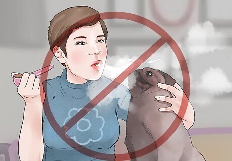 Do not expose your pet to marijuana smoke. Pets can also be affected by marijuana when it is smoked in their presence. If you are concerned about the effects of marijuana exposure, as well as the health risks of second-hand smoke, do not allow your pets to be exposed to the smoke. The level of exposure that creates marijuana poisoning, meaning a risk to your pet's life, is not possible just from inhaling smoke. However, marijuana smoke can have a negative impact on your pet's health and happiness. Remember, while you can make the consensual choice to be around marijuana smoke, your pet cannot give its consent. It will not anticipate or understand the effects of the drug and can be negatively impacted.