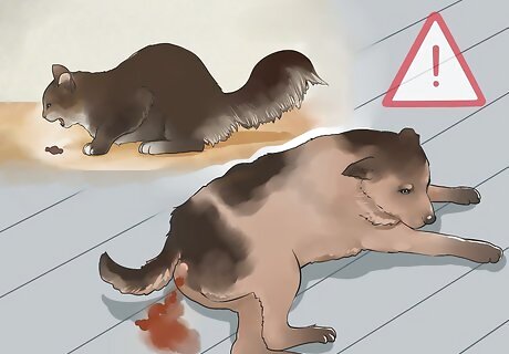 Pay attention to uncontrolled bodily functions. If your dog or cat has ingested a large amount of marijuana it may lose control of some of its body functions. Even if the pet is house broken, it may urinate or defecate in the house. It may drool uncontrollably. It may also vomit due to the ingestion. One way to tell if your pet has ingested marijuana is if the marijuana is visible in your pet's vomit.