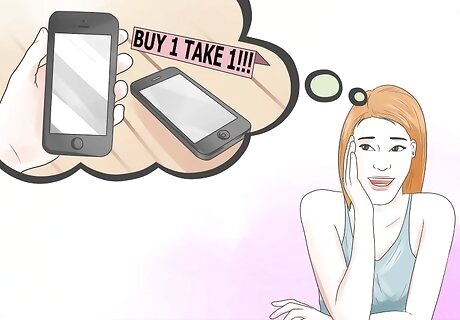 Use creative promotions to get people in the door. Pricing in order to promote a product is a very common application. This gives the consumer the impression that your business is a place to go to get deals, even if you're not always giving them deals. Try letting your pricing strategies advertise for you. Use a Buy One, Get One Free promotion to get people interested in your product and ensure that they'll be struck by the deals they're getting. If you can keep them coming back, even when you're not holding promotions, they'll be hooked. Often sellers will bundle several products in the same package, moving old or unwanted stock by creating killer deals. Dated DVDs, CDs, and video games are often sold using the bundle approach. Quantity discounts (20% off $150 or more!) and rebates ($399.95 after rebate!) can also help to get people to purchase more.