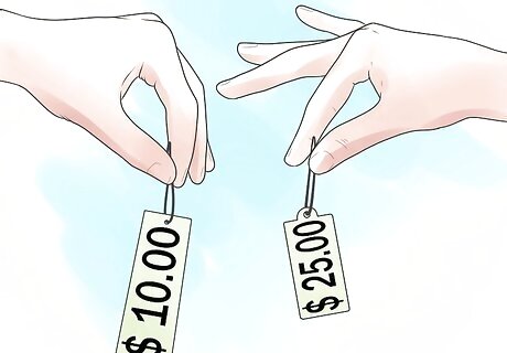 Understand the effects of over and under pricing. Setting the price inefficiently will have marked and measurable effects on your numbers. You need to learn to recognize the symptoms of having either a low or high price point. This can indicate that you may need to make a change. Underpricing is often done by companies who want to sell a higher volume, expecting that the customer will assume they're getting a deal, especially in a down economy. Doing this, however, can give the impression that the product is "cheap," not that they're getting their money's worth. Overpricing may drive your customers elsewhere. Especially when you're trying to get your feet on the ground as your business gets started, it can be tempting to set the price too high. The investment of starting a business can be scary and you'll probably want to start covering costs right away, but consider the customer's point of view. Setting it at a point you'll make money will only work if people are willing to pay for it.