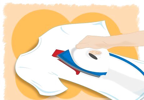 Iron the t-shirt. Once the paint is totally dry, place a clean cloth (such as a thin dishcloth) over the design. Set the iron to high and iron over the painted area of the t-shirt. This helps set the paint in place so that it won't easily come off.