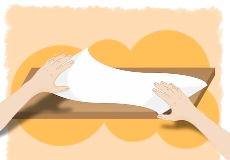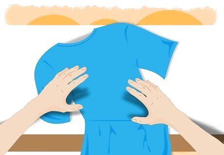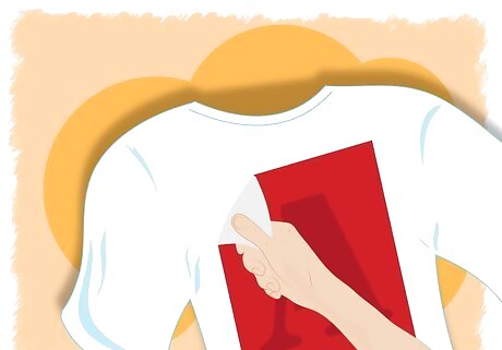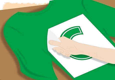 Lay the t-shirt on a flat surface. Smooth it out to remove any wrinkles or folds. Place the iron-on transfer design-side down on the t-shirt. Place a thin cloth, such as a dishcloth, over the transfer.