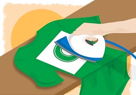 Iron the transfer. Place a hot iron over the cloth so that it heats the transfer underneath. Hold it there for the amount of time recommended on the iron-on transfer instructions.