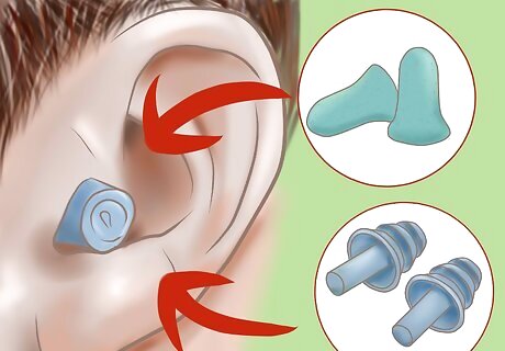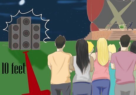Stand away from the speakers. Regardless of the type of earplugs you’re wearing, you’ll be at a greater risk of hearing loss if you stand right in front of the speakers and amplifiers, or right in front of the loud band. As a general rule, the back of the room will be quieter than the front. If you’re able to choose your own location at the concert, opt for a setting as far as possible from speakers and amps. Always sit at least 10 feet (3 meters) away from any speakers. If you’re at a concert with assigned seating, consider purchasing seats farther away from the stage. As an additional benefit, these seats will likely be less expensive.