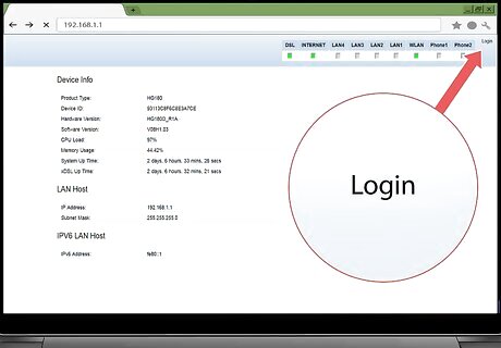 Log in if necessary. Many router pages have a password-protected login page. If you've never set up a login page, the login credentials can be found in your router's manual or online documentation. If your router's page doesn't have a login requirement, you'll want to add one. Most routers will allow you to add a login password from the Settings section of the page.