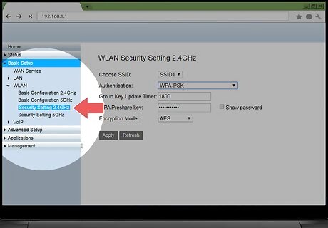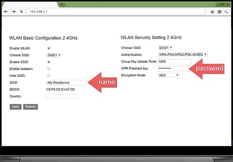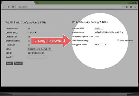 Change the password. Find the current password that you're using, then change it to something difficult to guess. Most routers allow for up to 16 characters for a password, so use all 16 if possible. Your password should include both upper- and lower-case letters, numbers, and symbols. Avoid using any personal information (e.g., a pet's name) for the password. You may first have to enter the current password. Changing your password prevents people from accessing your network with the router's default password.