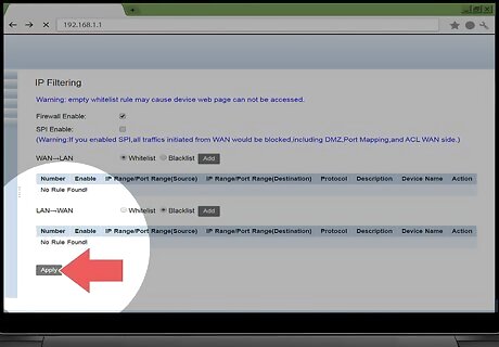 Save your changes. Click the Save button (or similar) to do so. This will add firewall protection to your router, making it more difficult for viruses and intruders to access your network.