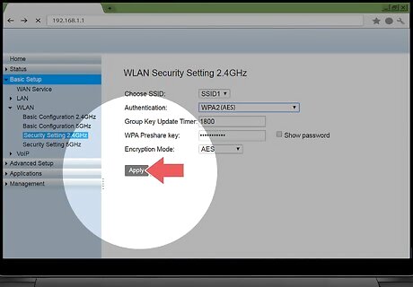 Save your changes. Click the Save button (or similar) to do so. This will encrypt your router, making it significantly more difficult for someone who doesn't have the password to hack into your network.