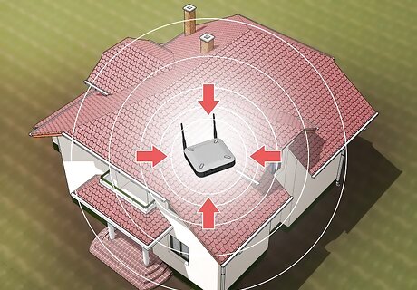 Place your router in the middle of your home. In addition to making your router coverage more balanced, doing this will limit the router's reach beyond your home's walls. This means that would-be network intruders won't be able to sit outside of your home and still connect to the network. Your home's size and layout may make this impossible; if so, just try to keep your router well-away from windows and external doorways.
