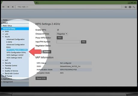 Look for a "Wi-Fi Protected Setup" or "WPS" section. This is usually a tab somewhere on the Settings page, though you might find it in the Security section if applicable to your router.