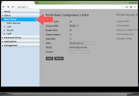 Click the Settings option. Doing so will take you to your router's Settings page, which is where you'll make all of the changes needed to secure your wireless home network.