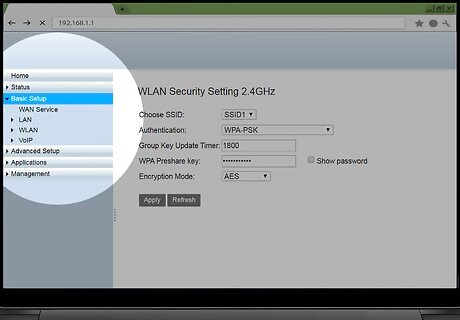 Find the "Settings" section. Many router pages have a Settings or a Wireless Settings section at the top or bottom of the page. If you can't find a "Settings" option, look for a gear-shaped icon or a triangle-shaped icon in one of the corners of the page. Clicking such an icon will usually prompt a drop-down menu with options such as Settings. You may first have to click a Wireless tab or section. EXPERT TIP Tyrone Showers Tyrone Showers Technologist Tyrone Showers is a Technologist and the Co-owner of Taliferro Group, an IT consulting company based in Seattle, Washington. With over 35 years of professional experience, he specializes in API Design, e-Commerce, Operational Efficiency, and website development. He has a B.S. in Computer Science from DeVry Institute of Technology. Tyrone Showers Tyrone Showers Technologist Effective router management enhances Wi-Fi security. Securing your Wi-Fi doesn't have to be complicated. Start by logging into your router and changing up that default password to something nice and strong that you update now and then. While you're at it, update the router firmware if there's a new version. Setting up a separate guest network can help, too, by keeping your main network locked down. Taking a few minutes to walk through those steps will keep your Wi-Fi in good shape.