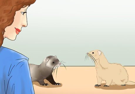 Pick out a bonded pair. If you’re purchasing or adopting multiple ferrets at once, visit a pet store or shelter to choose a bonded pair. These ferrets will already get along, so you won’t have to deal with introductions or socialization issues. Ask an associate to point out ferrets that are already bonded. If you can't find anyone knowledgeable about the ferrets at a facility, look for a pair that's cuddling or playing together.