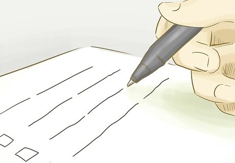 Create a checklist. A divorce settlement agreement should be as detailed as possible. One way to make sure that you cover everything is to come up with a checklist. Once you reach agreement on an area, you can then check it off. Be sure to cover the following: divide marital property identify separate property divide debts and liabilities decide on child custody and visitation determine child support payments decide if marital support (alimony) is necessary