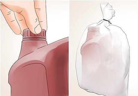 Cap the container and place it into a plastic bag. Secure the lid on the container as tight as you can. Put the container into a plastic bag so that if there is oil on the outside it won’t accidentally get onto anything else. It can be really difficult to clean up oil, so use caution when getting it ready to recycle.