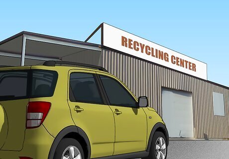 Locate the nearest drop-off location in your area. Most auto parts stores accept used oil for recycling purposes. If you can’t find a drop-off location and need to go to the actual recycling facility, look for one that is labeled “ABOP” (antifreeze, batteries, oil, and paint)—they accept materials that can’t be taken at regular recycling plants. For more information on locations near you, check out https://earth911.com/recycling-guide/how-to-recycle-motor-oil-and-filters/#recycling-locator.Warning: Don’t put the container of used motor oil out with your regular curbside recycling. It won’t end up in the right facility.