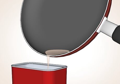 Transfer used cooking oil into the container every time you cook. Wait until the oil is warm rather than hot so that you don’t risk burning yourself, but don’t let it completely cool before you transfer it. If it cools completely, it’ll be harder to move. Never pour cooking oil or grease down the drain. It solidifies as it cools and can cause blockages in the plumbing.