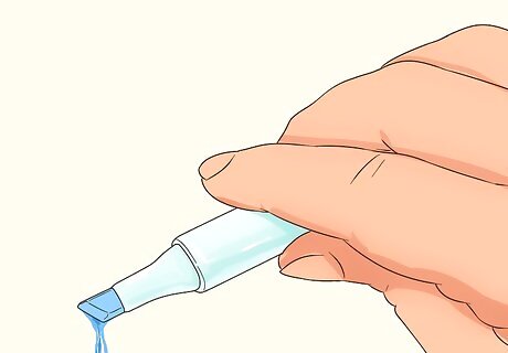 Drip the ink onto the marker nib slowly. The Various Ink has a small tip that allows you to add ink 1 drop at a time. Hold the marker below the container of ink at a 45-degree angle. Slowly drip the ink onto the tip of the marker, which is called the nib, by gently squeezing the bottle. The nib will absorb the ink.