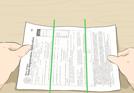 Print out both pages of the form. Follow the instructions on the bottom of the voter registration form’s second page when printing and folding your form. Print out both page 1, containing your information, and page 2, containing the return address, on separate sheets of paper. Keep the document at 100%; don’t reduce the size before you print it. Don’t print it out double-sided. Your sensitive information might be visible from the outside, especially if you’ve used thin copy paper or a heavy pen.