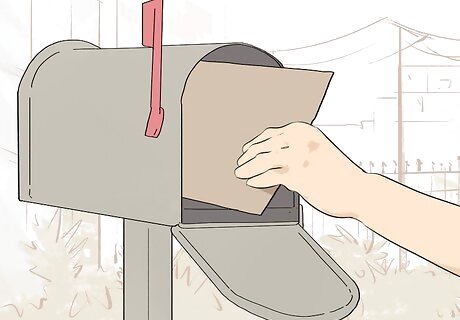 Tape up the packet and drop it off at an outgoing mailbox. Stick 1 or 2 pieces of tape onto the loose edges to secure them down. Check to make sure page 1 doesn’t slip out when you jostle the papers. Then, when it looks secure, deposit your packet at an outgoing mailbox. Don’t worry about adding any stamps; postage will be paid by the addressee. Alternatively, you can drop off the packet in person at the address listed, if it’s not a P.O. box.