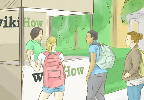 Run a voter registration booth. Set up the booth in a public place with lots of foot traffic, such as on a university campus, by a shopping mall, or near a food court. Put up a sign that says "Voter Registration Booth" so people walking by know what you are offering. Have voter registration forms on hand so people can fill them out when they stop at the booth. Use bright colors to make the booth stand out and catch the attention of passerby. Greet each person who passes by the booth with a friendly "Hello" or "Hi" so they are encouraged to stop and register to vote.
