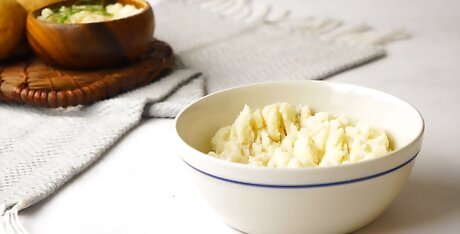 Use a pan on your stovetop. First, pour some cream. Bring it to a simmer. Stir your mashed potatoes into the cream evenly. Continue to stir until the potatoes are heated through. If needed, add more cream and wait for it to come to a simmer, then stir it into the potatoes. Depending on the amount of potatoes you’re reheating and the size of the pan, it’s best to start off with too little cream than too much. At the very least, use enough to coat the bottom of the pan. Use a food thermometer to check the potatoes’ internal temperature; for health reasons, the potatoes should reach at least 165º before they’re safe to eat.