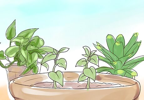 Learn to deal with overcrowding. Plants such as ‘Hen and chicks’ sedums, bromeliads or spider-plants can become too crowded in their pots because they have made too many new plants or just become overgrown. A slightly crowded plant looks better than a thin one as a general rule, so don’t rush to separate crowded houseplants, just know that it may become necessary. Bromeliads may become very top-heavy, for example, making it necessary to pinch off the ‘pups’ that grow as side shoots. Spider plants can be cut into sections and you can remove the ‘chicks’ from your sedums for replanting in new pots.