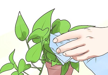 Be aware that houseplants with dull-looking leaves may just need a good dusting. In the still air of a house, plants can become covered in dust. This can block photosynthesis, affecting plant health. Either wipe the dust off with a damp cloth or rinse it off under a lukewarm tap. You can also buy special leaf-shine cloths, but that usually isn’t necessary. If you have a ‘fuzzy’ plant like a cactus or African Violet, try brushing off the dust with a soft brush or run a hairdryer over the plant on a cool setting.