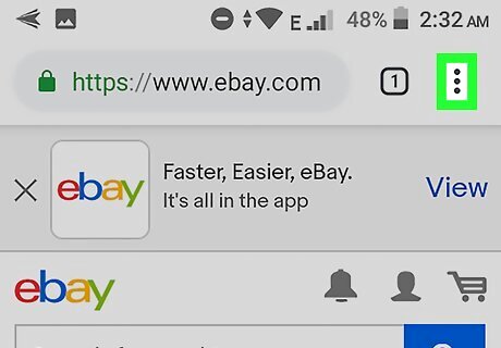 Select Desktop site in the menu. This will convert the page from eBay's mobile site display to its desktop display. This is important for accessing the Personal Information page for your account, since these settings aren't accessible on the mobile website.