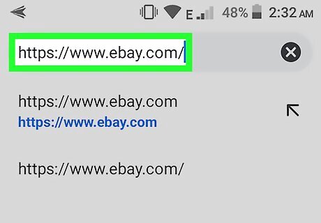 Open your phone's Internet browser and go to https://www.ebay.com/. This will direct you to eBay's website, where you can view your account information.