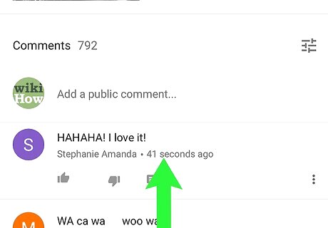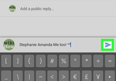 Tap the comment. The keyboard will expand and a typing area will appear. The username of the person you're responding to will appear in the text box with an “@” before it (e.g. @wikiHow).